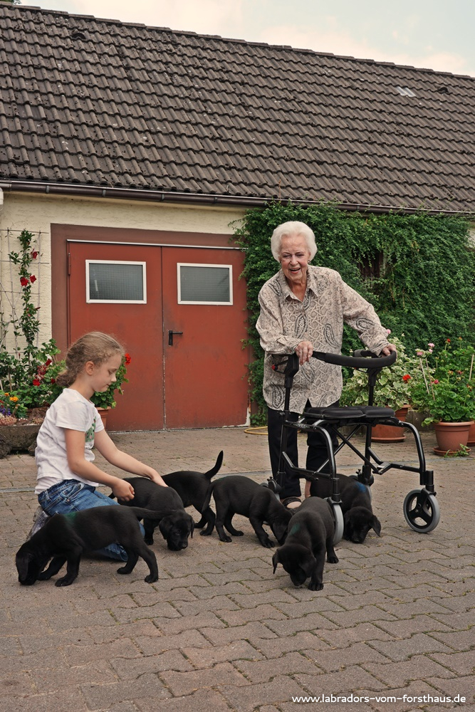 Nach wie vor kommen viele nette Menschen zu Besuch, und so lernen die Welpen auch in diesem Zusammenhang ständig neue Dinge kennen!