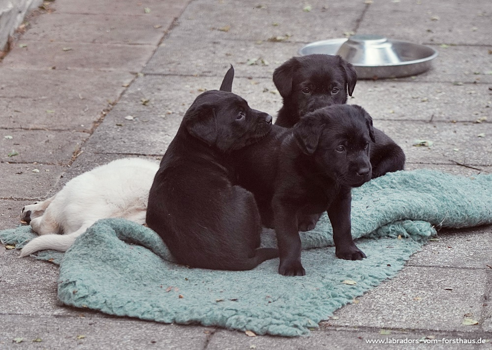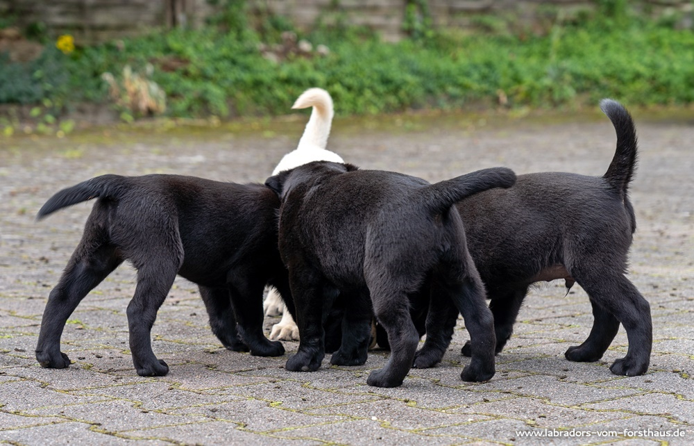 Die Kleinen werden immer neugieriger und unternehmungsfreudiger, deshalb dürfen sie auch immer mal wieder außerhalb der „Welpenstube“ auf Entdeckungstour gehen. Jetzt bekommen sie auch des Öfteren Besuch von ihren zukünftigen Besitzern.