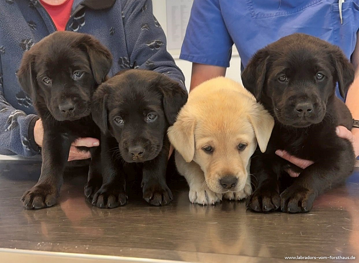 Das Foto ist bei unserem Tierarzt entstanden, nachdem alle Jungs ihre erste Impfung und ihren Mikrochip bekommen hatten, was sie recht locker über sich ergehen lassen haben. Natürlich gab es zur Belohnung feine Leckerchen…